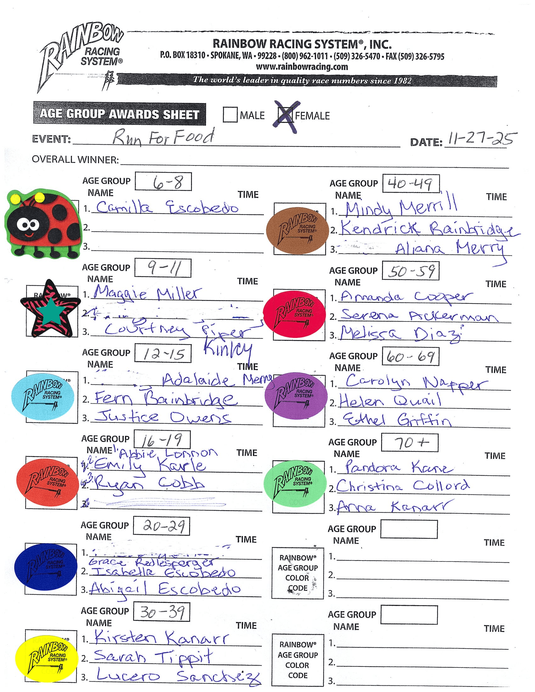 2025 Run for Food Race Results